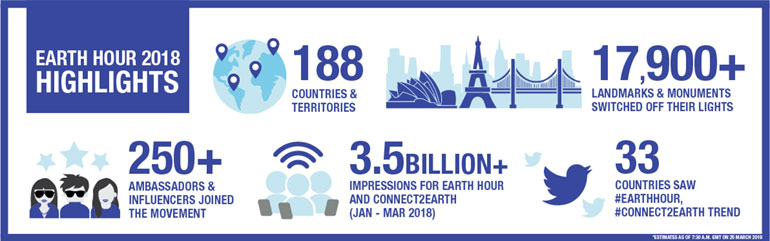 Δίπλα μας σε αυτή την πρωτοβουλία ήταν, για μια ακόμη χρονιά, χιλιάδες πολίτες, αλλά και δεκάδες ιστορικά μνημεία και κτίρια, φορείς και επιχειρήσεις της χώρας μας που έκαναν το μήνυμα της εκστρατείας για άμεση θωράκιση του περιβάλλοντος και των θαλασσών μας από την κλιματική αλλαγή, πιο επίκαιρο και πιο ουσιαστικό από ποτέ. Η τόσο ενεργή συμμετοχή κοινού και φορέων της χώρας συνέβαλε καθοριστικά στην παγκόσμια προβολή της συμμετοχής της Ελλάδας, για μια ακόμα χρονιά, στη μεγαλύτερη συμμετοχική εκστρατεία ενάντια στην κλιματική αλλαγή. Συνολικά, 188 χώρες και περισσότερα από 18.000 ιστορικά τοπόσημα και μνημεία από κάθε γωνιά του πλανήτη έδωσαν «δυναμικό παρών», με τους πολίτες σε Ελλάδα, αλλά και ολόκληρο τον κόσμο, να διαδίδουν το μήνυμα της «Ώρας της Γης» μέσα από περίπου 3,5 δισεκατομμύρια αναφορές στα ψηφιακά μέσα δικτύωσης και ενημέρωσης.