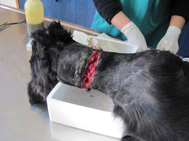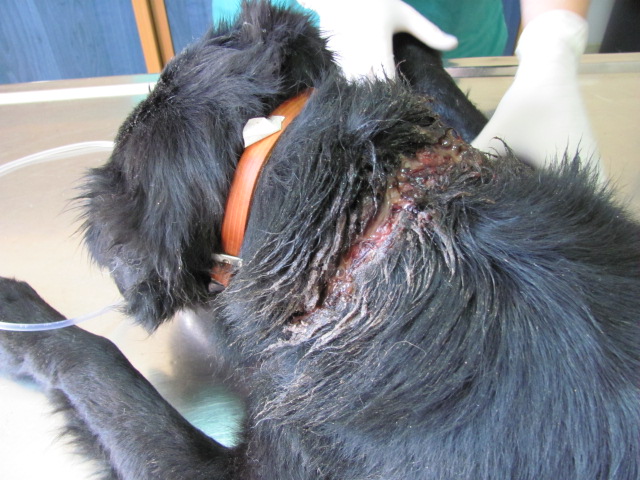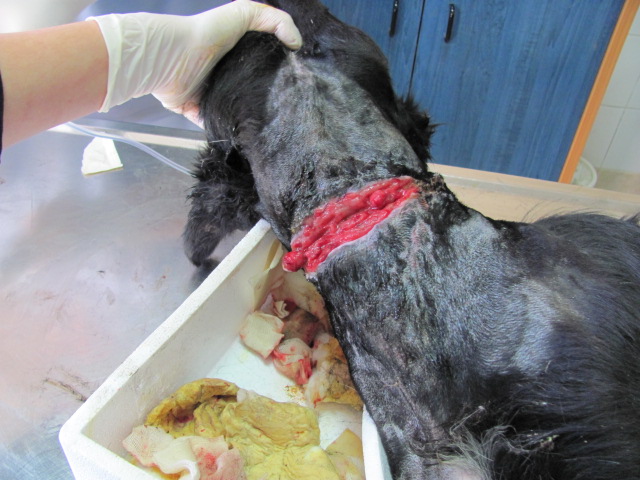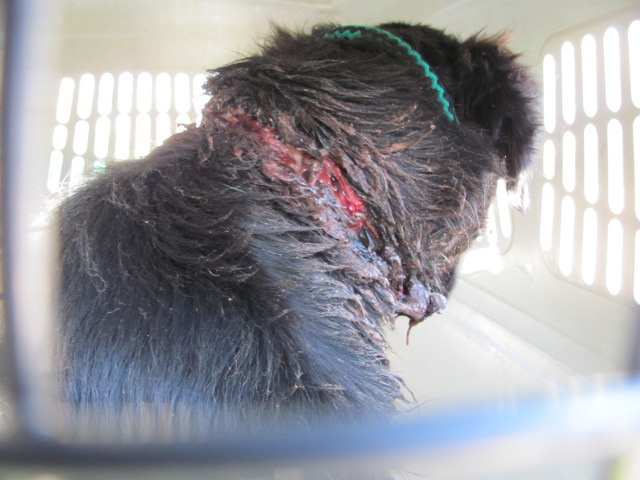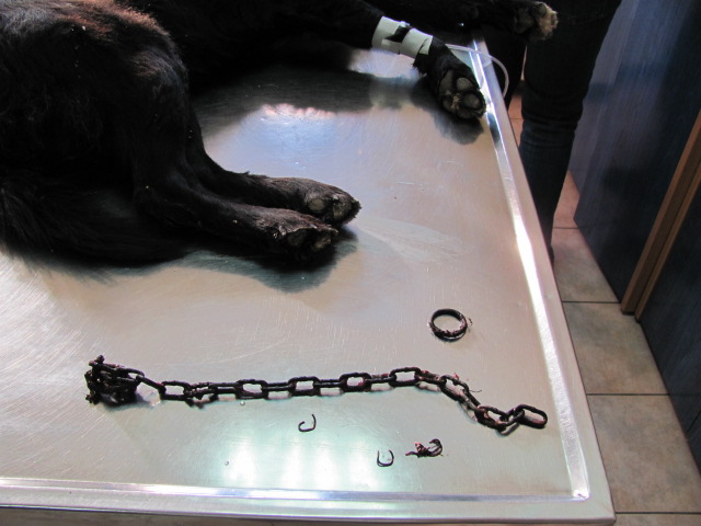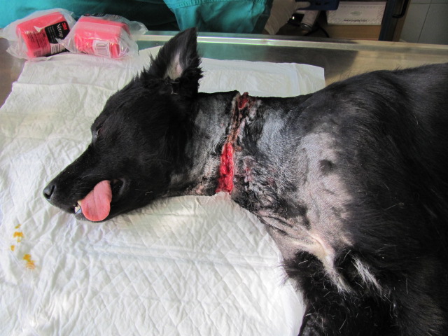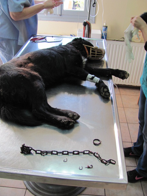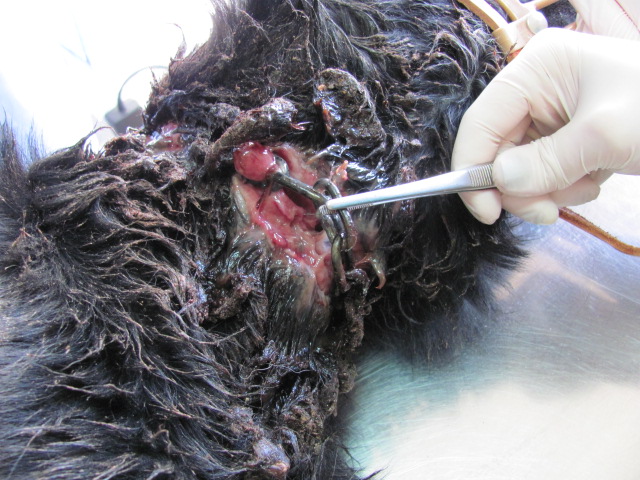 Οι φωτογραφίες, που δημοσιεύουμε και στη zougla.gr, είναι του Freddy, που κατάφερε μόνος του να σπάσει την πολύ στενή αλυσίδα του, η οποία είχε γίνει ένα με το δέρμα του και του την έβγαλε ο κτηνίατρος μετά από επέμβαση. Ο Freddy είναι περίπου ενάμιση έτους και γυρνούσε στους δρόμους της Αίγινας.