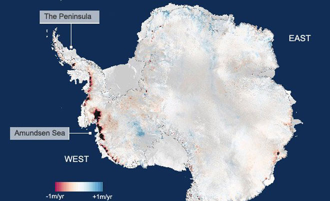 Περίπου 160 δισεκατομμύρια τόνους πάγο χάνει η Ανταρκτική κάθε χρόνο, σχεδόν το διπλάσιο σε ποσότητα από όσο έχανε το 2010. Η δε ποσότητα νερού που παράγεται είναι αρκετή για να οδηγήσει σε αύξηση της παγκόσμιας στάθμης της θάλασσας κατά περίπου 0,43 χιλιοστά ανά έτος.