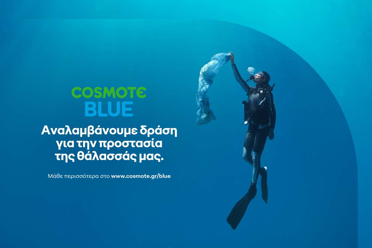 Στην προσπάθεια για τη διαφύλαξη του φυσικού πλούτου του οικοσυστήματος των ελληνικών θαλασσών, η COSMOTE αναλαμβάνει τη νέα περιβαλλοντική πρωτοβουλία COSMOTE BLUE με στόχο την προστασία των ελληνικών θαλασσών. Η πρωτοβουλία ξεκινά με την απομάκρυνση της πλαστικής ρύπανσης από το θαλάσσιο περιβάλλον της Ελλάδας σε συνεργασία με την κοινωνική επιχείρηση «Εναλεία».