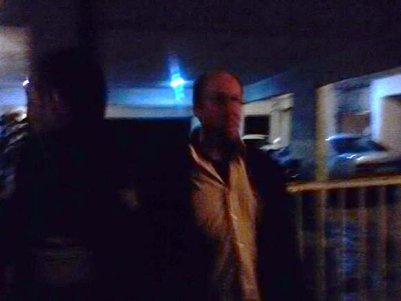 | Ο Παύλος Ταχτάλογλου την ώρα που επιστρέφει σπίτι του και ενώ βρίσκεται σε εξέλιξη η διαμαρτυρία των φιλόζωων εναντίον του. |