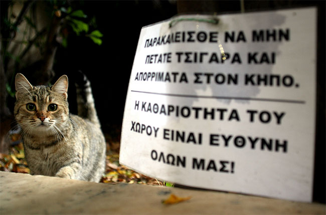 Προσοχή! Μην πετάτε τα σκουπίδια και τις γόπες στον κήπο. Η καθαριότητα του χώρου είναι ευθύνη όλων μας! Τάδε έφη η γαλή...