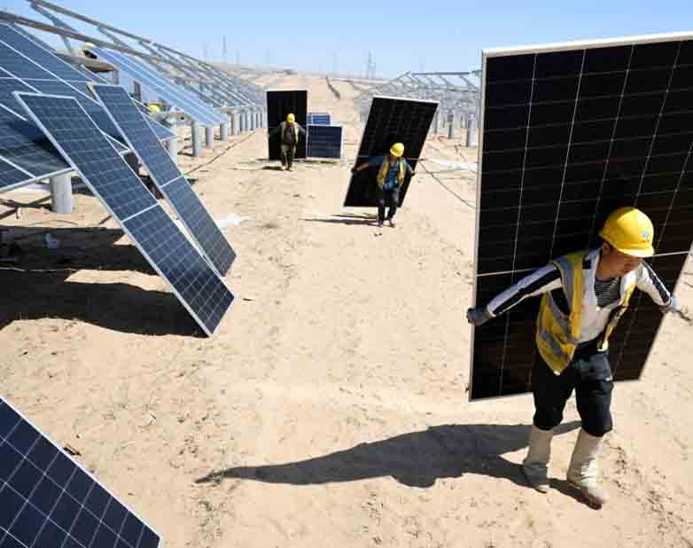 Κινέζοι εργάτες κουβαλάνε φωτοβολταϊκά