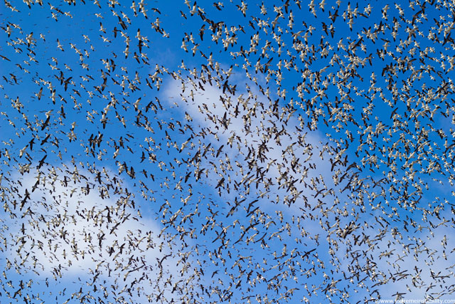 Απίστευτες εικόνες κατέγραψε ο φακός του φωτογράφου Mike Hollingshead στο εθνικό πάρκο του Καναδά. Συγκεκριμένα απαθανάτισε το ομαδικό ταξίδι 1,3 εκατ. χηνών προς πιο ζεστά κλίματα.