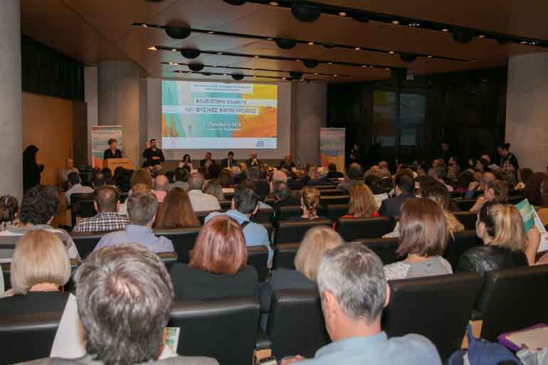 Ο Κώστας Φωτάκης, Αναπληρωτής Υπουργός Έρευνας και Καινοτομίας, ανέφερε στον χαιρετισμό του: «Το 2018, στο πλαίσιο του προγράμματος Ερευνώ-Δημιουργώ-Καινοτομώ της Γενικής Γραμματείας Έρευνας και Τεχνολογίας, εγκρίθηκαν 58 έργα για το περιβάλλον και την κλιματική αλλαγή. Παράλληλα, ξεκίνησε η υλοποίηση της ερευνητικής υποδομής ΠΑΓΓΑΙΑ που θα συνδυασθεί με την εμβληματική πρωτοβουλία δημιουργίας Εθνικού Δικτύου για την Κλιματική Αλλαγή. Η συνολική δαπάνη για τις δράσεις αυτές ανέρχεται στα 50 εκ. €». Ακολούθησε χαιρετισμός από τη Μαρίνα Χρυσοβελώνη, Υφυπουργό Εσωτερικών, η οποία τόνισε ότι η περιβαλλοντική πολιτική οφείλει να καταστεί ταυτόσημη έννοια και φίλτρο για κάθε πολιτική πράξη: στη νομοθεσία, στα έργα υποδομής, στην εκπαιδευτική πολιτική, στην πολιτική πολιτικής προστασίας, ενώ πρόσθεσε ακόμη ότι πρέπει να υπάρξει σύνδεση της οικονομίας και της αειφορίας κάθετα και οριζόντια, με εκτατικές και εντατικές πολιτικές.