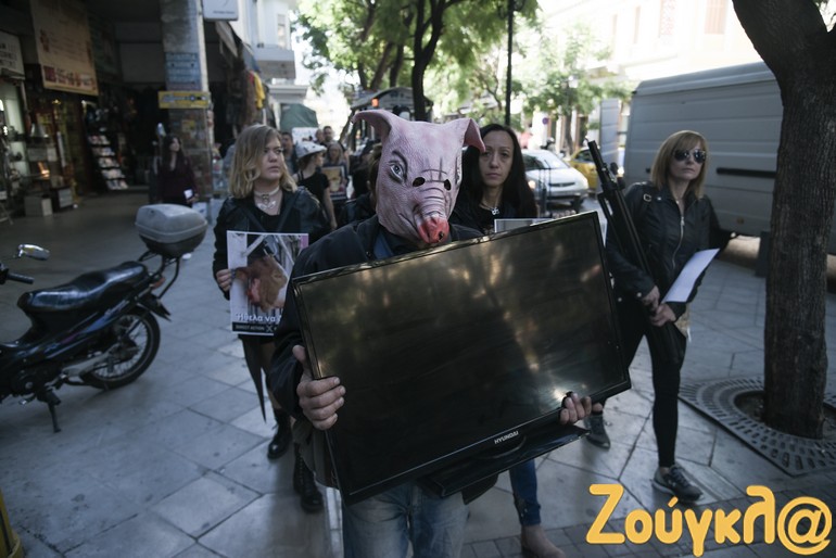 «Υπάρχει κάτι που στοιχειώνει τις πόλεις μας. Ανάμεσά μας, στα σφαγεία, κρατείται ένα καλά κρυμμένο μυστικό. Αυτό, των χιλιάδων πλασμάτων που βασανίζονται και σκοτώνονται», δηλώνει στο zougla.gr η ακτιβίστρια Μαρία Στραδενή-Σκούρτα, από την οργάνωση «Direct action everywhere», που διοργάνωσε αυτή και άλλες παρόμοιες δράσεις.