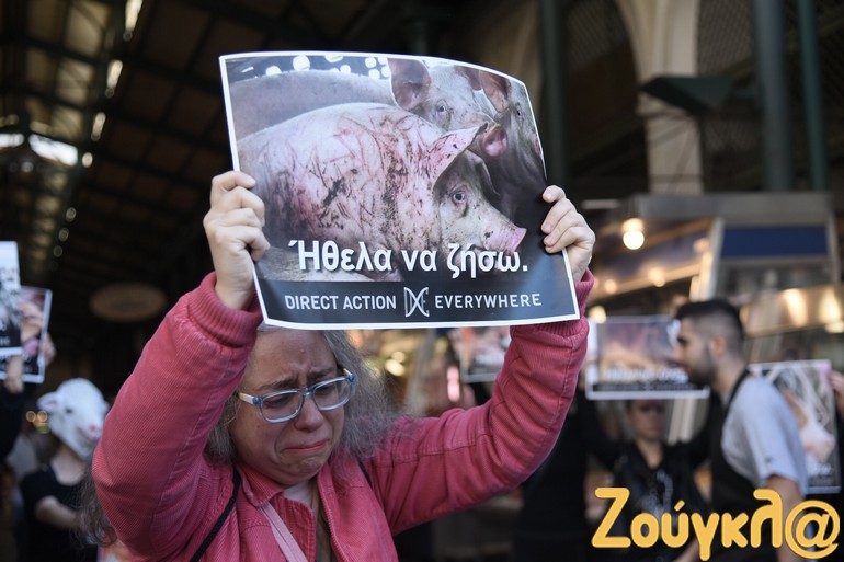 «Ήθελα να ζήσω». Με αυτό το συμβολικό μήνυμα γραμμένο σε πλακάτ, που απεικονίζει ένα γουρούνι στο σφαγείο, ακτιβιστές πραγματοποίησαν δυναμική παρέμβαση στην κεντρική κρεαταγορά των Αθηνών, στη Βαρβάκειο, θέλοντας να ευαισθητοποιήσουν τον κόσμο για την προάσπιση των δικαιωμάτων των ζώων.