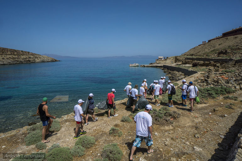 Όσο κι αν φαίνεται περίεργο, το μικρό αυτό νησί, γνωστό ως τόπος εξορίας άλλων εποχών, αποτελεί ένα από τα πιο ασφαλή καταφύγια της απειλούμενης Monachus monachus, αφού φιλοξενεί ούτε λίγο ούτε πολύ το… 10% του παγκόσμιου πληθυσμού της. Η προστασία αυτού του μοναδικού καταφυγίου, από κοινού με τις κοινωνίες της Σύρου και της Άνδρου, είναι ακριβώς ο στόχος του προγράμματος ΚΥΚΛΑΔΕΣ LIFE, στο πλαίσιο του οποίου πραγματοποιήθηκε χθες, Κυριακή 17 Μαΐου, ο καθαρισμός των παραλιών, με τη συμμετοχή της ομάδας πεδίου του WWF Ελλάς και πολλών εθελοντών.