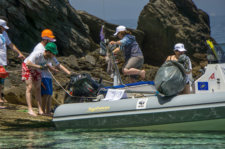 Για τη συγκεκριμένη αποστολή, το WWF Ελλάς συνεργάστηκε με τη Μεσόγειος SOS και την εκστρατεία medsoscleanup.gr, ενώ συμμετείχαν -μεταξύ άλλων- μέλη της Φωτογραφικής Λέσχης Σύρου, μέλη του Ομίλου Φουσκωτών, βαθμοφόροι πρόσκοποι αλλά και φοιτητές της Σχολής Εμποροπλοιάρχων με δική τους πρωτοβουλία. Όλοι απέδειξαν την ευαισθησία τους στον μοναδικό μας θαλάσσιο πλούτο και προσέφεραν εθελοντικά και με θετική διάθεση τις υπηρεσίες τους.