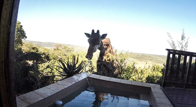 Ένα πρωί, όταν επέστρεψαν στο δωμάτιο τους από το πρωινό διαπίστωσαν ότι είχαν έναν απρόσμενο επισκέπτη: Μια καμηλοπάρδαλη αποφάσισε να σβήσει τη δίψα της στην… πισίνα του δωματίου τους! Tο ζευγάρι κατέγραψε το περιστατικό και το βίντεο κάνει τον γύρο του διαδικτύου…