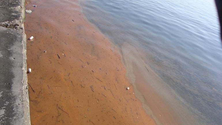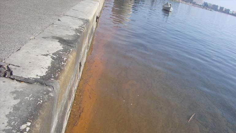 Στο φαινόμενο της «ερυθράς παλίρροιας» αποδίδεται η τεράστια κοκκινωπή κηλίδα, που εκτείνεται από την Καλαμαριά μέχρι το λιμάνι της πόλης.