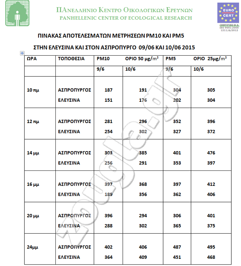 • Το ΠΑΚΟΕ μέτρησε PM10 και PM5 στον Ασπρόπυργο και στην Ελευσίνα με υπέρβαση 20-30 φορές πάνω από τα όρια.