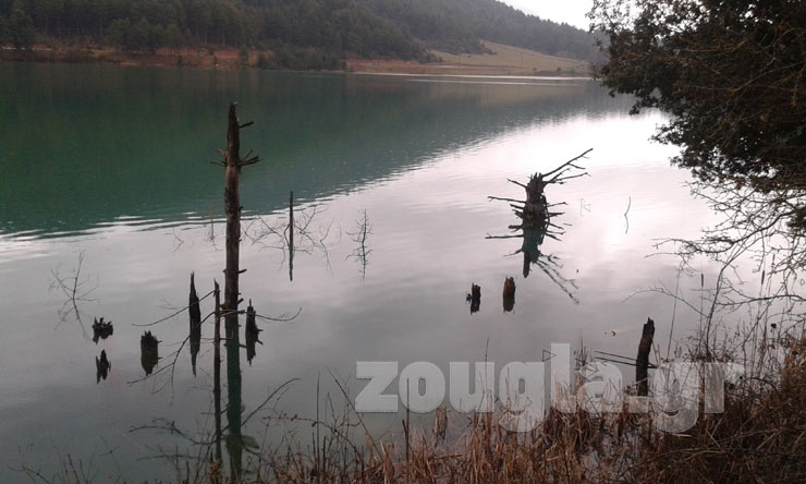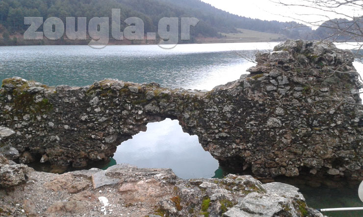 Στο κέντρο της λίμνης υπάρχει το εκκλησάκι του Αγίου Φανουρίου. Παλαιότερα υπήρχε εκεί η Μονή Αγίου Γεωργίου, αλλά λόγω των πλημμυρών μεταφέρθηκε σε μικρή απόσταση από την αρχική της θέση, σε διπλανό ύψωμα.