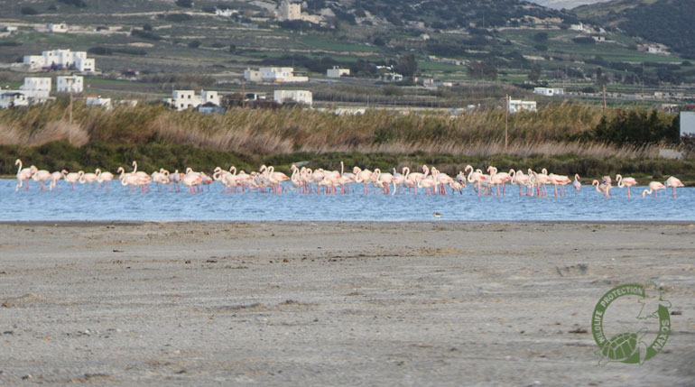 Ο Σύλλογος «Προστασία Άγριας Ζωής Νάξου» μόλις έμαθε για την ευχάριστη άφιξη των πανέμορφων φλαμίνγκο, έσπευσε στην περιοχή, τα φωτογράφησε και συνέστησε σε όσους θα έχουν την τύχη να τα θαυμάσουν από κοντά, «να σεβαστούν ότι είναι ιδιαίτερα κουρασμένα και να μην τα ενοχλήσουν».