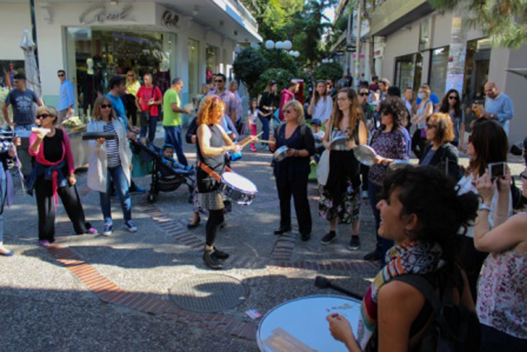 Ακολούθησε η δράση «Μουσικά όργανα από μέταλλα», ως μια μέθοδος και ένα μέσο διάχυσης του μηνύματος για τη σημασία της ανακύκλωσης των μετάλλων. Με τον εξαίρετο συντονισμό των τριών μελών της μπάντας των «Quilombo», εκπαιδευτικοί, εισηγητές, εκπρόσωποι της Εταιρίας, εκπαιδεύτηκαν (για δύο περίπου ώρες), οργανώθηκαν και αποτέλεσαν τελικά μια καλοκουρδισμένη μπάντα. Η πολύμορφη αυτή μπάντα έδωσε ηχηρό παρόν σε πλατεία στο Χαλάνδρι και δημιούργησε μια πολύ ωραία ατμόσφαιρα. Προσέλκυσε πολλούς παρατηρητές και κέντρισε το ενδιαφέρον των πολιτών. Στελέχη και εθελοντές της Εταιρίας ενημέρωσαν τους πολίτες για τους στόχους και το περιεχόμενο της εκδήλωσης και μοίρασαν ενημερωτικό υλικό για το ιστορικό και τις δράσεις της Ελληνικής Εταιρίας Προστασίας της Φύσης σε ενήλικες αλλά και σε παιδιά.