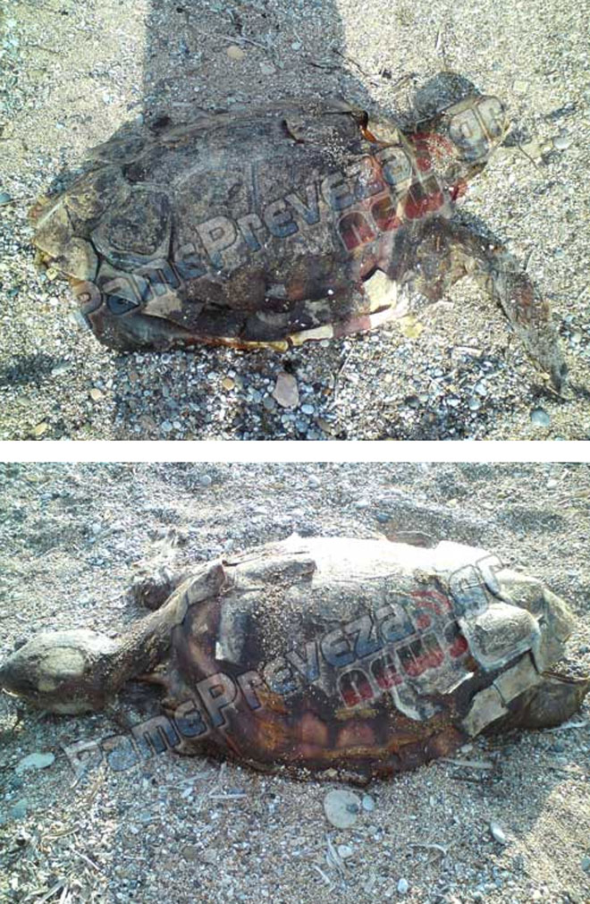 Κατά μήκος της παραλίας Μονολίθι στην Πρέβεζα, από το χωριό του Μύτικα μέχρι και τη διασταύρωση για τη Νικόπολη (με εξαίρεση τα κομμάτια μπροστά από το BAR Ionio και το Cuervo που κάποιος φιλοτιμήθηκε και τα καθάρισε) όλη η παραλία είναι γεμάτη μικρά και μεγάλα κομμάτια πίσσας. Ταυτόχρονα, χελώνα που εντοπίστηκε στην ίδια παραλία νεκρή πριν από 10 περίπου ημέρες, παραμένει στο σημείο, σε κατάσταση αποσύνθεσης, χωρίς κανένας από τους αρμόδιους φορείς να την περισυλλέξουν.