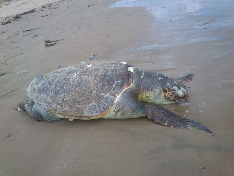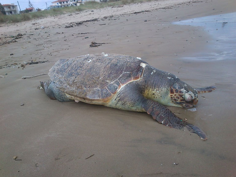 Παρέα Κρητικών είδαν μία νεκρή χελώνα, πιθανότατα καρέτα – καρέτα, την οποία είχε ξεβράσει η θάλασσα.