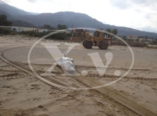 Ένα δελφίνι -4,5 μέτρων- εκβράστηκε νεκρό, σημαίνοντας συναγερμό στη Λιμενική Αρχή του νομού. Τα αίτια θανάτου του θαλάσσιου θηλαστικού παραμένουν άγνωστα.