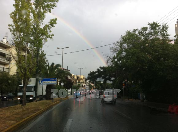 Μετά τη βροχή, ένα μεγάλο ουράνιο τόξο σχηματίστηκε στον ουρανό της Αθήνας. Η φωτογραφία τραβήχτηκε στην περιοχή του Χαλανδρίου...