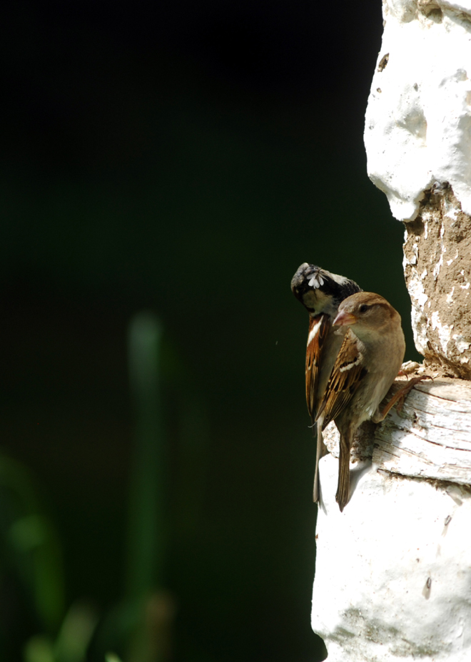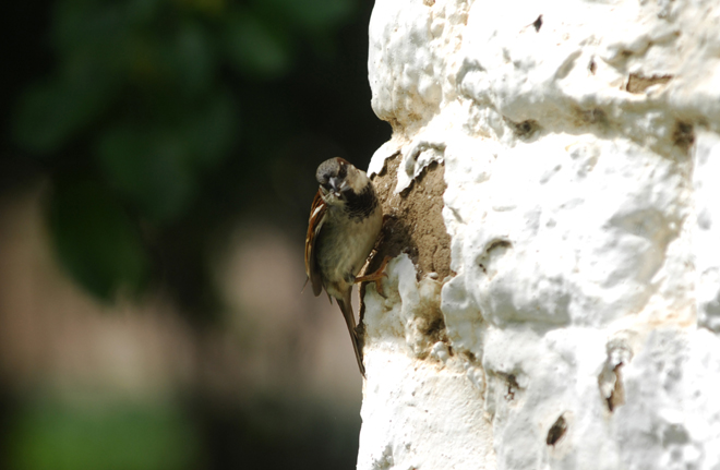 (Σπουργίτι προσπαθεί να πιάσει μυρμήγκια σε τοίχο παλιού σπιτιού)