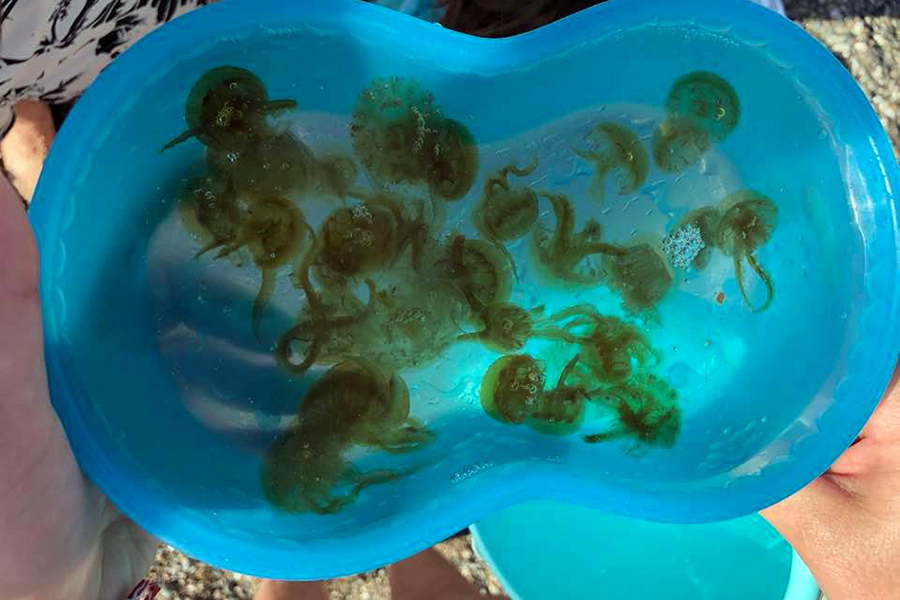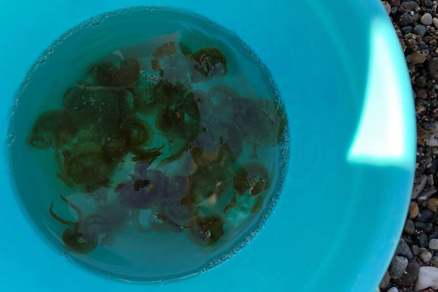 Σε αυτές φαίνονται δεκάδες μέδουσες, οι οποίες «ψαρεύτηκαν» με μόνο μία κίνηση με ένα παιδικό κουβαδάκι…