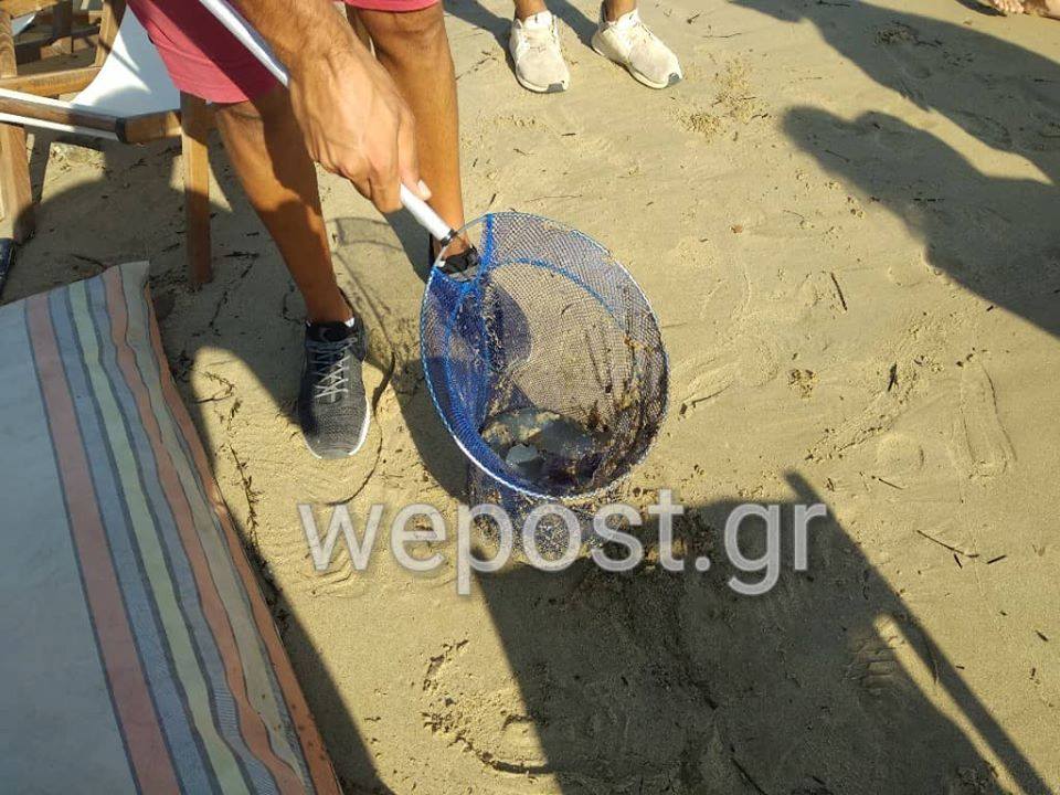Μέδουσα γίγας εμφανίστηκε στην παραλία του Ποταμού Επανομής. Τη μέδουσα εντόπισαν λουόμενοι οι οποίοι ειδοποίησαν το προσωπικό του beach bar για να την απομακρύνει, κάτι που έγινε λίγη ώρα αργότερα.
