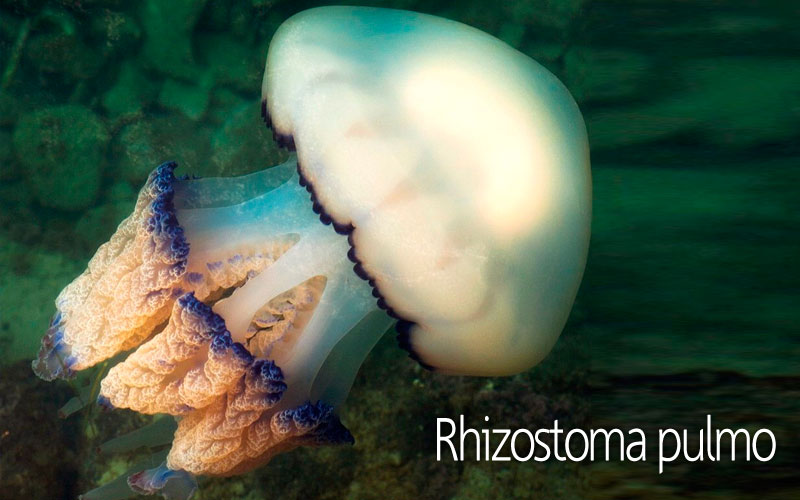 Γνωστή και ως μεγάλη γαλάζια μέδουσα η Rhizostoma pulmo είναι μεγάλη σε μέγεθος και η «ομπρέλα» της έχει γαλαζωπό χρώμα με μοβ αποχρώσεις ή μια μοβ ταινία στο εξωτερικό της μέρος. Το τσίμπημά της δεν είναι ενοχλητικό.