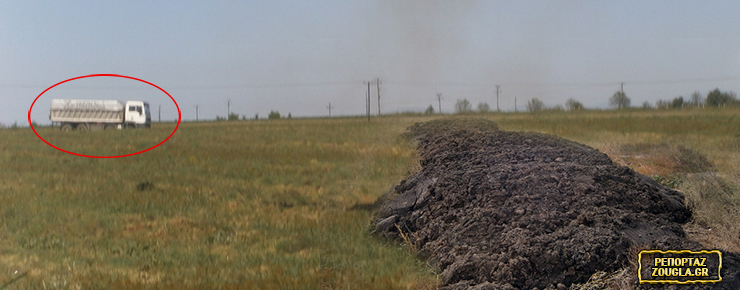 Όπως φανερώνουν οι φωτογραφίες που εξασφαλίσαμε, τα φορτηγά του εργολάβου αφήνουν στη… μέση του πουθενά τη λυματολάσπη.
