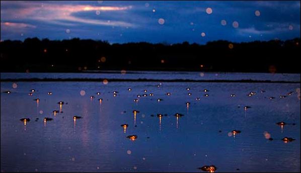 Βλέποντας έναν αλιγάτορα κατά τη διάρκεια της μέρας ακούγεται τρομακτικό, πόσο μάλλον να δει κανείς τη νύχτα αρκετούς από αυτούς μέσα σε μια λίμνη. Αυτήν ακριβώς την εικόνα είδε ο φωτογράφος της άγριας ζωής Larry Lynch.
