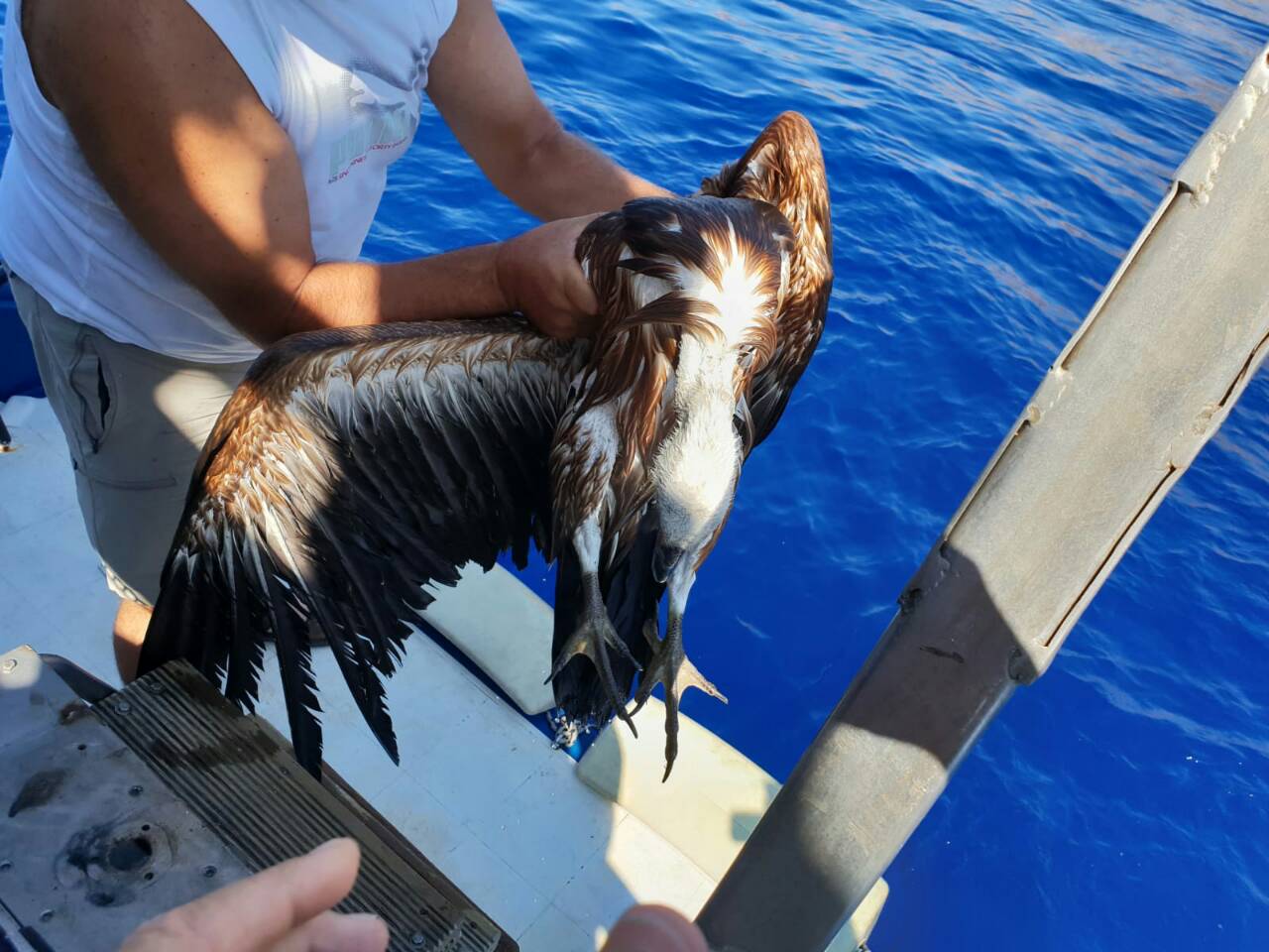 Ο κ. Παπαμιχελάκης την ώρα που βρισκόταν με το πλοίο του στη θαλάσσια περιοχή Βόλακας, νότια του Ρεθύμνου, είδε έναν τραυματισμένο γύπα να επιπλέει στη θάλασσα.