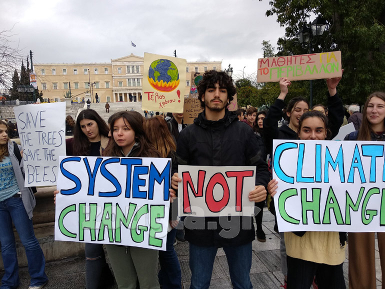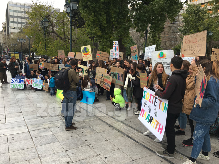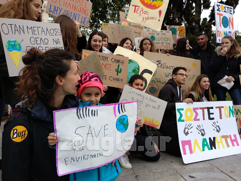 Με κεντρικό σύνθημα «Ο πλανήτης που καταστρέφετε είναι ο κόσμος που κληρονομούμε» μαθητές και φοιτητές συγκεντρώθηκαν στην Πλατεία Συντάγματος για να διαδηλώσουν για την κλιματική αλλαγή και υπέρ της προστασίας του περιβάλλοντος. Κρατώντας «πλακάτ» με συνθήματα όπως «Μια Γη, μία ευκαιρία» και «Σώστε τον πλανήτη» οι μαθητές και οι φοιτητές πραγματοποίησαν πορεία σε κεντρικούς δρόμους της Αθήνας και κατέληξαν πάλι στο Σύνταγμα.