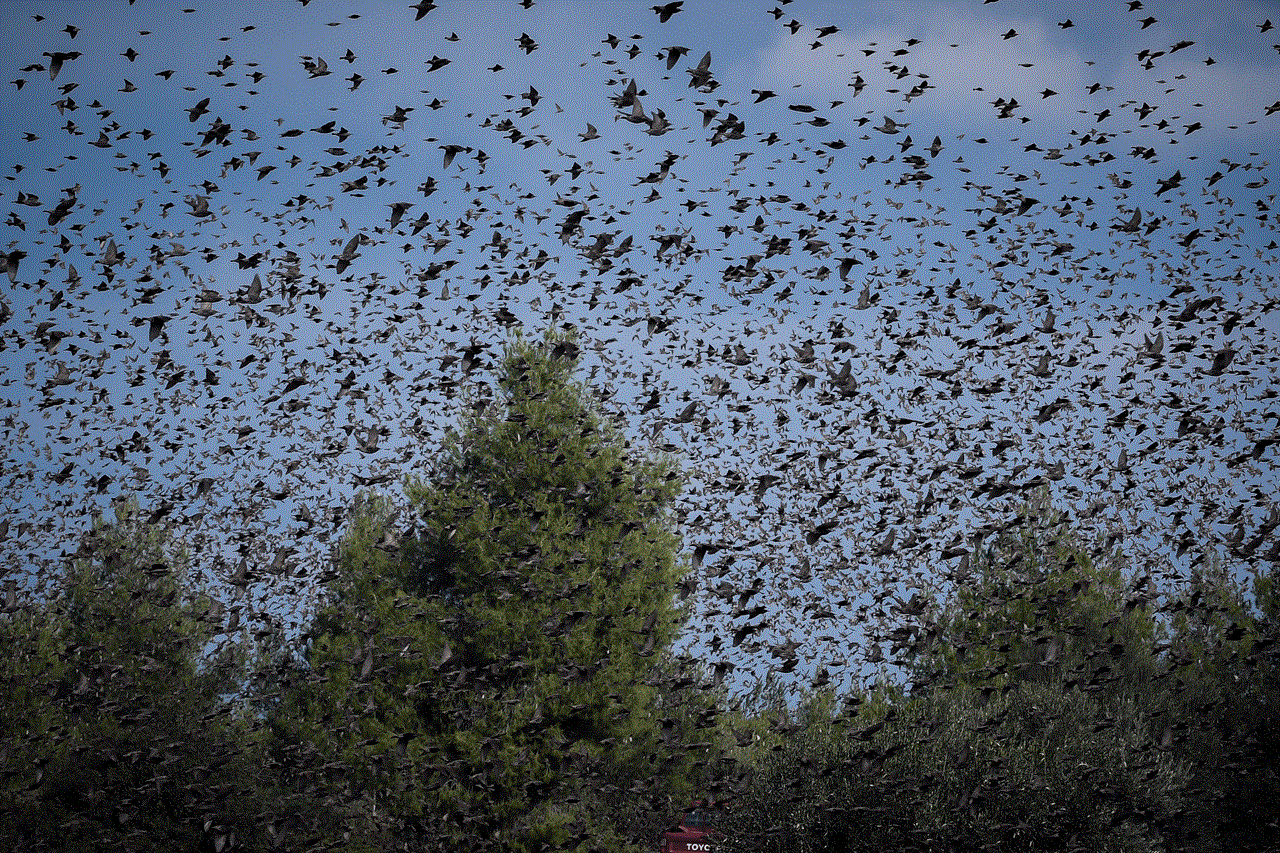 Τα αγριοπούλια είχαν κυριολεκτικά καταλάβει την άσφαλτο, ενώ όταν τα αυτοκίνητα τα υποχρέωσαν να εγκαταλείψουν το δρόμο, το ταυτόχρονο πέταγμα τους σχεδόν σκίασε τον ορίζοντα.