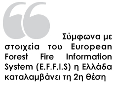 Στον θλιβερό αυτό απολογισμό καταστροφής του Ευρωπαϊκού φυσικού πλούτου, η Ελλάδα καταλαμβάνει την 2η θέση σε καμένες εκτάσεις, παρόλο που μέχρι στιγμής έχουν εκδηλωθεί λιγότερες, σε σχέση με τα άλλα κράτη, μεγάλες πυρκαγιές.