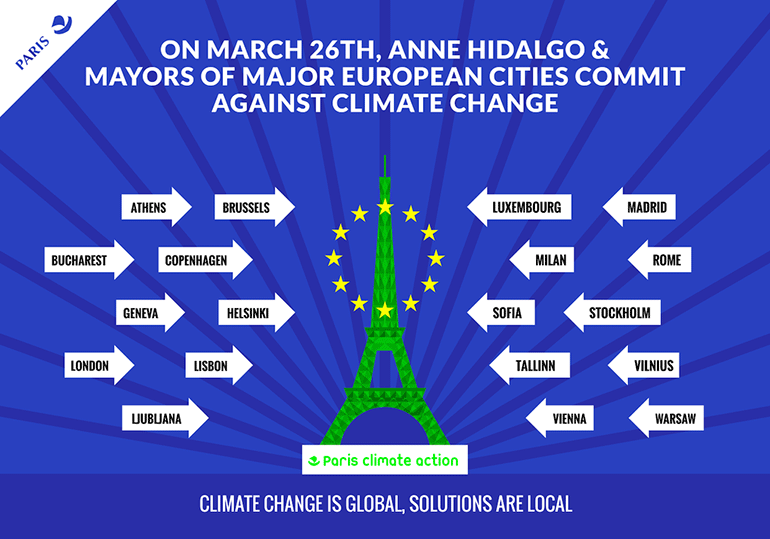 Στη διάσκεψη «Ευρωπαϊκές πρωτεύουσες και μεγάλες πόλεις δραστηριοποιούνται για το κλίμα», που διοργανώνεται από το δήμο του Παρισιού στη γαλλική πρωτεύουσα, μίλησε ο δήμαρχος Αθηναίων, κ. Γιώργος Καμίνης. «Το ότι δεν έχουμε, ως δήμος μητροπολιτικές αρμοδιότητες, όπως όλες σχεδόν οι μεγάλες Ευρωπαϊκές πρωτεύουσες, δυσκολεύει την προσπάθεια να επηρεάσουμε τις δημόσιες συγκοινωνίες ή να ασκήσουμε ενεργειακή πολιτική», επεσήμανε ο δήμαρχος Αθηναίων.