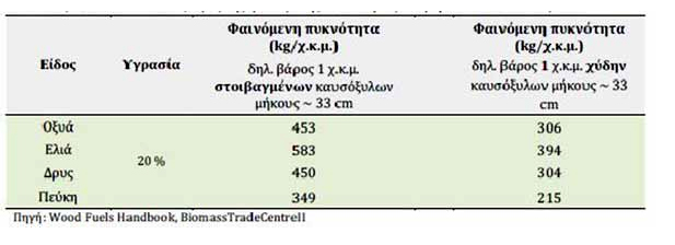 Για 1 τόνο οξυά σε στοιβαγμένα καυσόξυλα μήκους 33 cm θα πρέπει να πάρουμε 2,20 χ.κ.μ. (m3) ή σε χύδην καυσόξυλα 3,27 χ.κ.μ. (m3). Αν λοιπόν για 1 τόνο οξυάς δίναμε παλαιότερα 140,00 €, κατ’ αντιστοιχία φέτος θα πρέπει να δώσουμε περίπου 63,50 € για 1 χ.κ.μ. (m3) στοιβαγμένα καυσόξυλα ή 43,00 € για 1 χ.κ.μ. (m3) χύδην καυσόξυλα. Ενώ για 1 τόνο ελιά σε στοιβαγμένα καυσόξυλα μήκους 33 cm θα πρέπει να πάρουμε 1,72 χ.κ.μ. (m3) ή σε χύδην καυσόξυλα 2,54 χ.κ.μ. (m3). Αν λοιπόν για 1 τόνο ελιά δίναμε παλαιότερα 160,00 €, κατ’ αντιστοιχία φέτος θα πρέπει να δώσουμε περίπου 93,00 € για 1 χ.κ.μ. (m3) στοιβαγμένα καυσόξυλα ή 63,00 € για 1 χ.κ.μ. (m3) χύδην καυσόξυλα.
