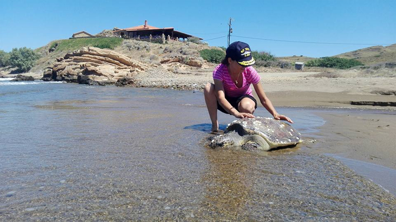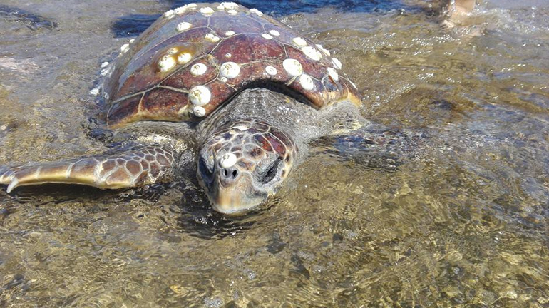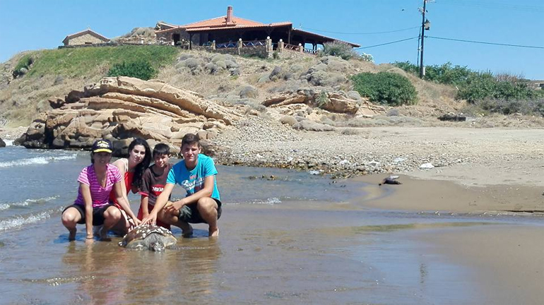Άμεση ήταν η κινητοποίηση κατοίκων στη Λήμνο μόλις έγινε αντιληπτή η παρουσία μιας τραυματισμένης θαλάσσιας χελώνας στην παραλία Γομάτι.