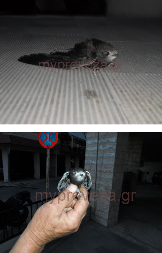 Το πουλί, άγνωστο το πώς βρέθηκε σε αυτό το επικίνδυνο σημείο, λόγω της μικρής του ηλικίας δεν μπορεί να ανοίξει τα φτερά του και να πετάξει, είχε όμως φύλακα άγγελο, τον κ. Τάκη ο οποίος τον περισυνέλεξε και θα τον φροντίζει μέχρι το πρωί της Τετάρτης στο σπίτι του.