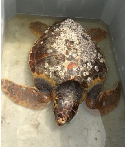 Η τραυματισμένη χελώνα careta- careta βγήκε στην παραλία στην περιοχή Βασιλική της Άγιας Μαρίνας Φθιώτιδας αργά το βράδυ της Πέμπτης.