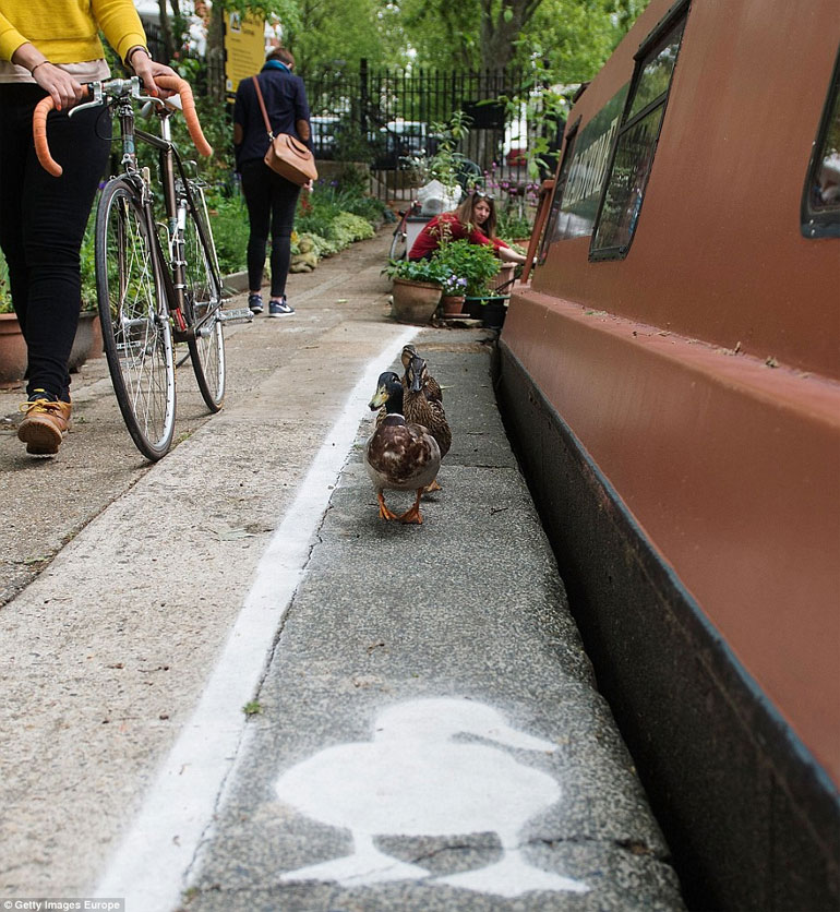 Τα συμπαθή πτηνά μπορούν πλέον να περπατούν ανενόχλητα σε Λονδίνο, Μπέρμιγχαμ και Μάντσεστερ μετά από πρωτοβουλία του Canal & River Trust (οργανισμός που είναι υπεύθυνος για τη συντήρηση καναλιών μήκους πάνω από 3.320 χλμ. σε υδροβιότοπους της Ουαλίας και της Αγγλίας). Σε μια προσπάθεια να ευαισθητοποιήσουν τους Βρετανούς και να τους κάνουν να είναι περισσότερο προσεκτικοί με τα είδη της Άγριας Πανίδας, μέλη του οργανισμού έβαψαν μια λευκή ρίγα στην άκρη μονοπατιών, βάζοντας μεταξύ άλλων σε διάφορα σημεία και το σήμα της πάπιας. Η πρωτότυπη περιβαλλοντική καμπάνια έχει κεντρικό σύνθημα: «Μείνε στη μια πλευρά, περπάτα πιο σιγά, για να ζουν όλοι καλά».