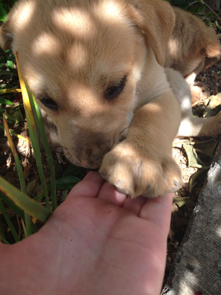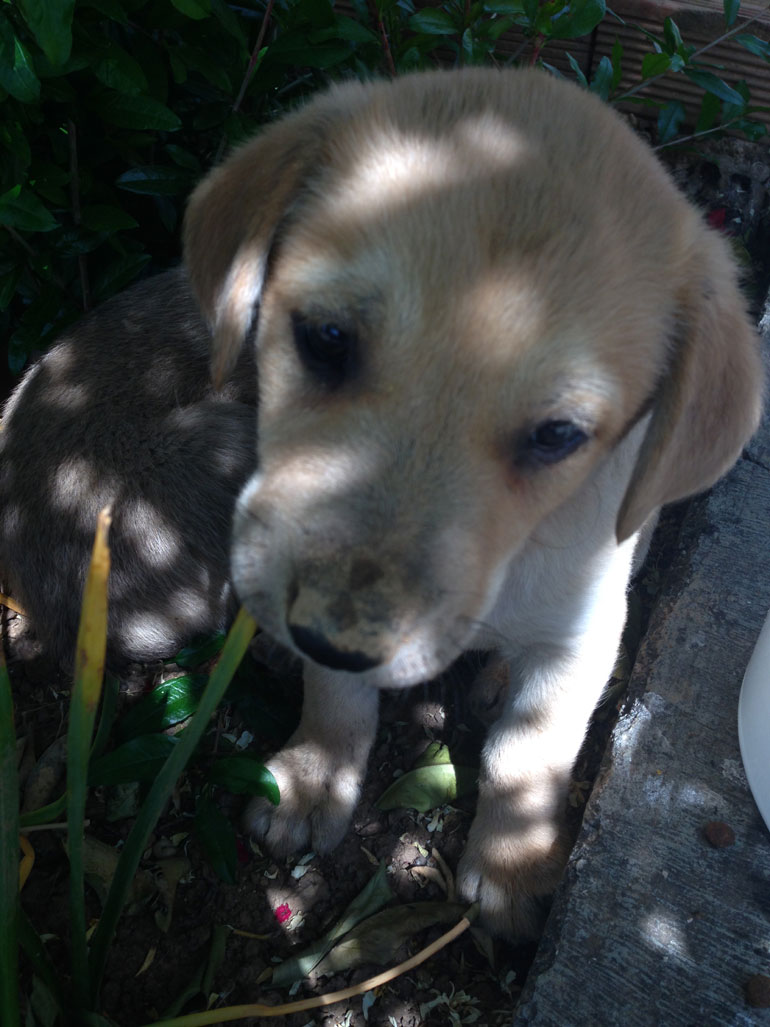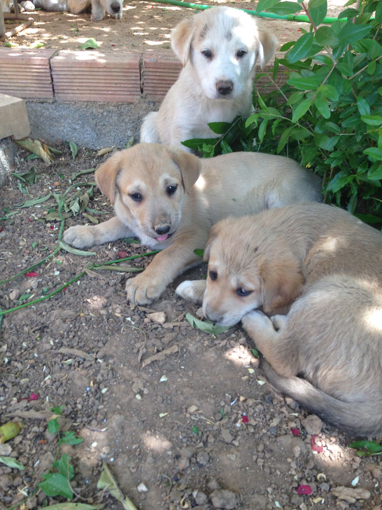Στον δρόμο βρίσκονται πέντε κουταβάκια με τη μανούλα τους. Είναι περίπου 40 ημερών, δύο θηλυκά και τρία αρσενικά. Φαίνεται να είναι ημίαιμα λαμπραντόρ.
