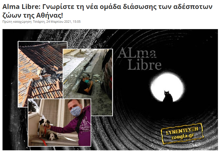 Σχετικά με το νέο υπό διαβούλευση νομοσχέδιο για τα ζώα, η φιλοζωική οργάνωση που διακρίνεται για τις διασώσεις αδέσποτων ζώων, Alma Libre, αναφέρει τα εξής:
