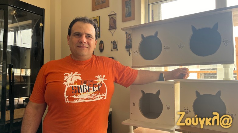 «Τον Αύγουστο είχα πάει Σαλαμίνα για μια δουλειά, στην επιστροφή μου είδα πολλά ζώα, γάτες, σκύλους να είναι στον δρόμο. Από τις δουλειές μου, μου περισσεύουν πολλά ξύλα, δηλαδή κομμάτια. Κάποια στιγμή ξεκίνησα να φτιάχνω σπιτάκια, να τα μοιράζω, να τα πηγαίνω όπου μου τα ζητούσαν. Τώρα τελευταία μου δίνει ο κ. Χατζηδάκης, που έχει ένα ξυλοεμπορικό ξύλα, κάθε Σάββατο και συνεχίζω να φτιάχνω τα σπιτάκια. Έχω μια σελίδα στο Facebook: «Σπέρνουμε Αγάπη Σπέρνουμε Ανθρωπιά», όπου μας στέλνει ο κόσμος τα αιτήματά του για σπιτάκια. Όσο μπορώ φτιάχνω. Έχω στείλει σε νησιά, τώρα θα στείλω σε πολλές περιοχές στη δυτική Μακεδονία (Καστοριά-Κοζάνη). Κάθε σπιτάκι μου παίρνει 10 λεπτά για να το φτιάξω, από υλικά που θα ήταν στα σκουπίδια», λέει χαρακτηριστικά ο Αντώνης, μιλώντας στη «Ζούγκλα».