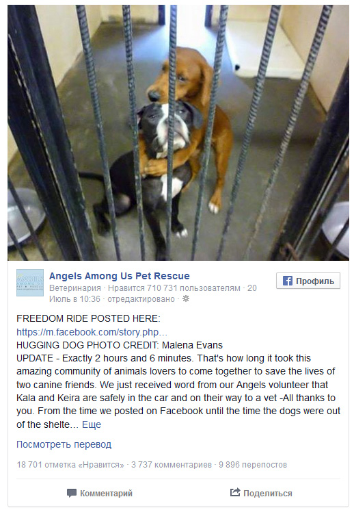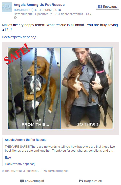 «Ακριβώς δύο ώρες και έξι λεπτά. Τόσο χρειάστηκε προκειμένου αυτή η απίστευτη κοινότητα των φιλόζωων (Angels Among Us Pet Rescue) να τους σώσει τη ζωή» αναφέρεται στη σχετική ανακοίνωση.