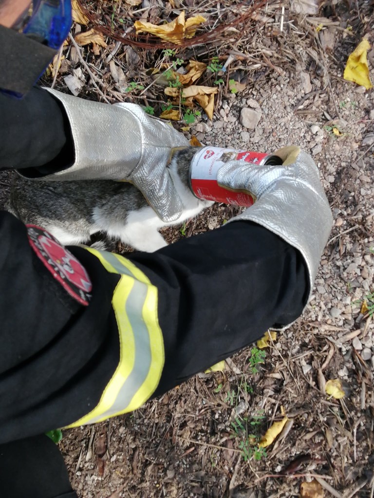 Πρόκειται για έναν μικρό γατούλη, το κεφάλι του οποίου είχε εγκλωβιστεί σε ένα κονσερβοκούτι για αρκετές ώρες. Η ομάδα του εργοστασίου της MYTILINEOS επενέβη εγκαίρως απεγκλωβίζοντάς τον και χαρίζοντάς του ξανά την ελευθερία του.