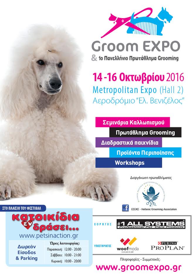 Κατά τη διάρκεια του Groom Expo ο επισκέπτης θα έχει την ευκαιρία να παρακολουθήσει το 1ο Πανελλήνιο Πρωτάθλημα grooming, το οποίο απευθύνεται μόνο σε επαγγελματίες, κατά τη διάρκεια του οποίου θα οριστεί και η Εθνική Ομάδα Grooming.