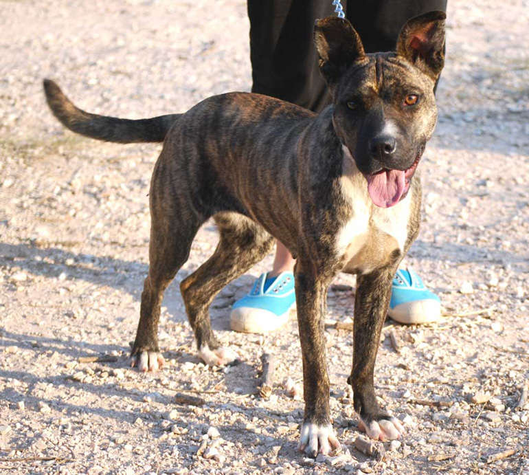 Η Kali είναι ένα θηλυκό κουτάβι περίπου 5-6 μηνών (γεν. αρχες 2015) ημίαιμο Pitbull που βρέθηκε εγκατελημμένο στην Παιανία στις 11/7/15 να κλαίει, προσπαθώντας να βρει κάποια ασφάλεια.