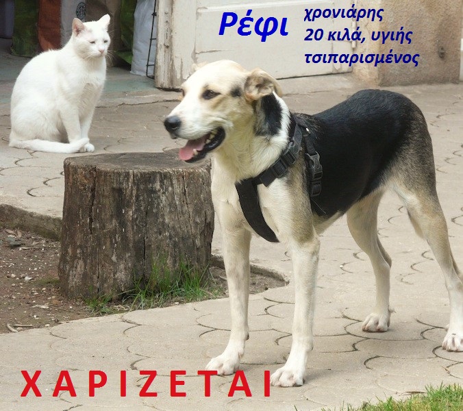 Ο Ρέφι είναι ένας σκύλος με εξαιρετικό χαρακτήρα. Μεσαίου μεγέθους, πολύ παιχνιδιάρης, με μεγάλη αδυναμία στη βόλτα και στα χάδια. Εμβολιασμένος, τσιπαρισμένος και στειρωμένος, δεν «λερώνει» σε εσωτερικούς χώρους.