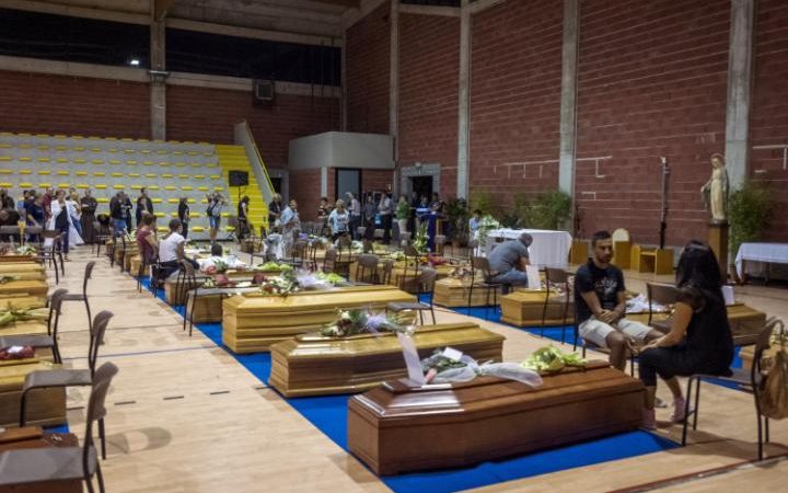 Ένα συγκλονιστικό στιγμιότυπο κατέγραψε ο φωτογραφικός φακός κατά τη διάρκεια της τελετής στη μνήμη των θυμάτων του σεισμού στην Κεντρική Ιταλία.
