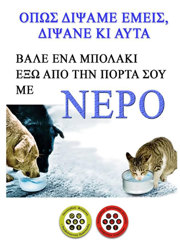 Ακολουθούν οι οδηγίες της Πανελλαδικής Φιλοζωικής και Περιβαλλοντικής Ομοσπονδίας σχετικά με την προστασία των ζώων εν μέσω των υψηλών θερμοκρασιών.