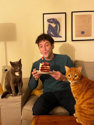Ο δεύτερος ήρθε μέσω Facebook και ο τρίτος σφήνωσε στο αυτοκίνητο από το Φάληρο μέχρι την Ομόνοια όπου σώθηκε από έναν πυροσβέστη. Φυσικά και έχουν το δικό τους ξεχωριστό κομμάτι στη βασιλόπιττα. Είναι και οι τρεις δίπλα μου όταν μελετώ τις τρελαμάρες μου για τον Φλωμπέρ και τον Ναπολέοντα τον τρίτο. Τέλος, το σημαντικότερο, κόντρα στην πεποίθηση των ανόητων πως “οι γάτες δε νιώθουν”, με συντρόφεψαν σε ασταμάτητα δάκρυα αλλά και χαρούμενες αλλαγές. Τι άλλο να ζητήσει κανείς;».
